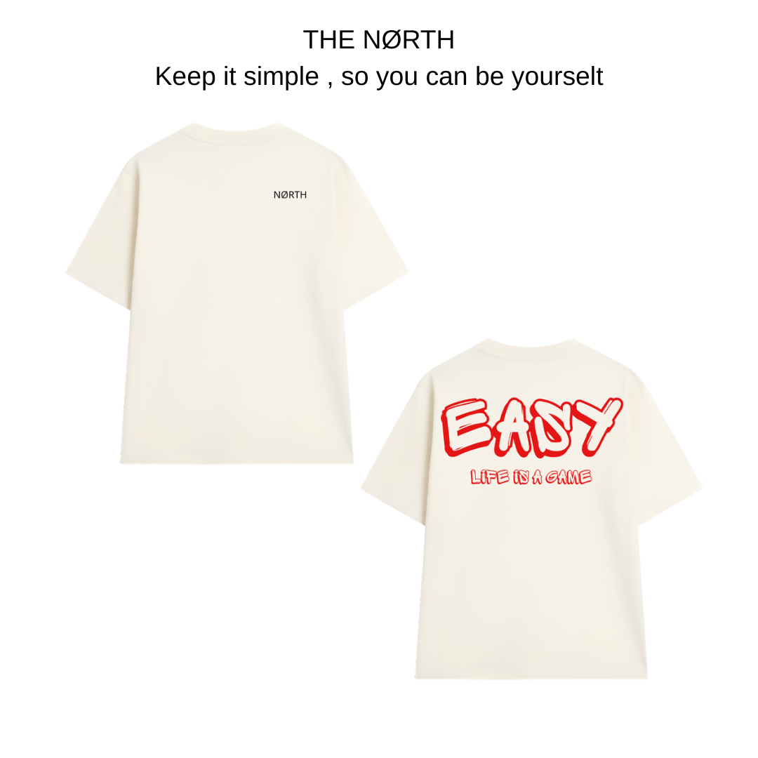 Áo phông EASY được xây dựng trên form oversize cơ bản của NØRTH, tập trung vào độ rộng vừa đủ, phom dáng gọn và cảm giác mặc thoải mái hằng ngày.