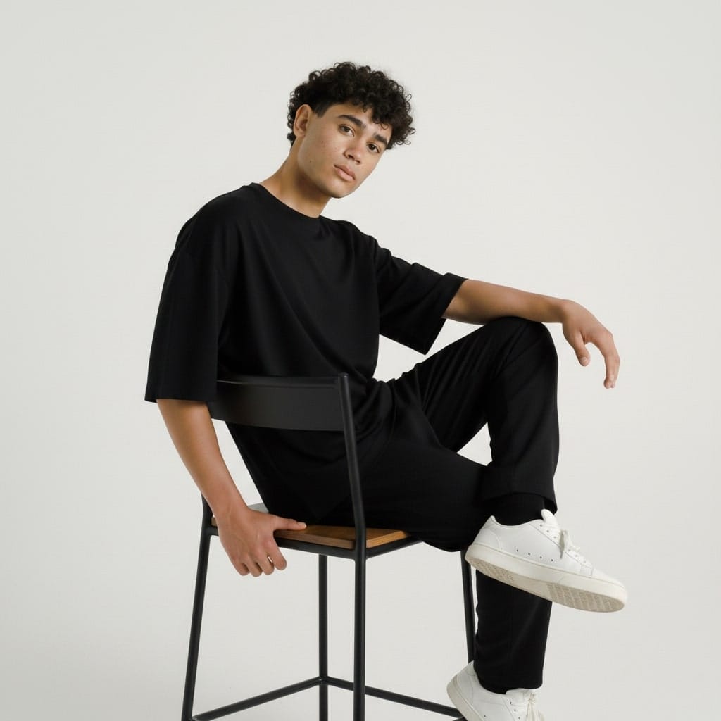 - Form dáng: Boxy Fit / Dropped Shoulder / Oversize Vai trễ, thân vuông, tạo độ rủ tự nhiên và tôn dáng.